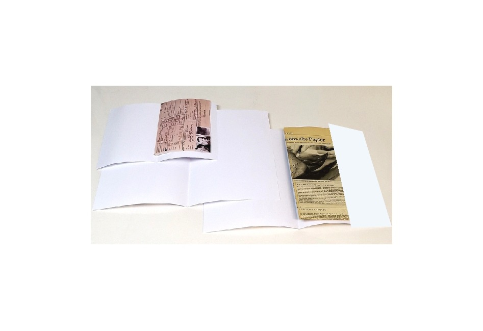Einlegemappen für dünne Dokumentensammlungen fertigen wir aus 80 g oder 120 g hochwertigem ROSALIEN-Archivpapier.