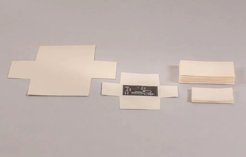 Gestanzt im Vollformat aus einem Stück fertigen wir Klappumschläge konsequent aus dem sehr bewährten Schweizer Spezial-Fotopapier „Proterno-N“.