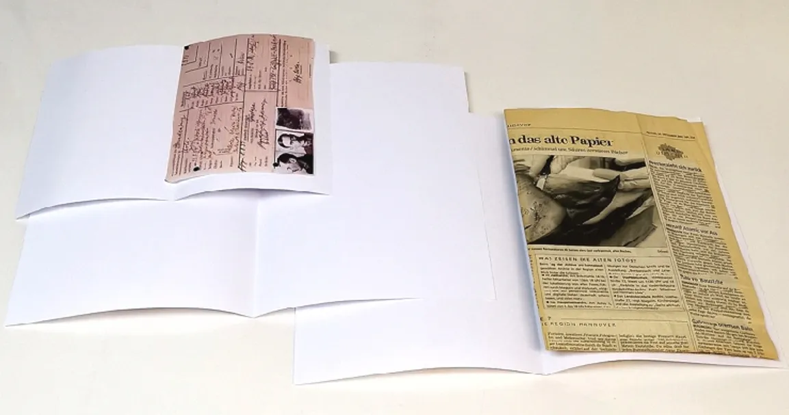 Einlegemappen für dünne Dokumentensammlungen fertigen wir aus 80 g oder 120 g hochwertigem ROSALIEN-Archivpapier.